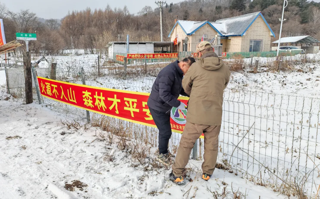 為增強林區(qū)群眾和過往人員的防火意識,島安林場開展防火宣傳活動。工作人員在林區(qū)及村屯道路兩側懸掛鮮艷彩旗,這些彩旗成為流動的“防火提示牌”,時刻提醒過往人員注意森林防火。在村口等人員密集處張貼醒目的防火宣傳條幅,“森林防火警鐘長鳴”“火源不入山,森林才平安”等標語,以直白的方式向村民和行人傳遞森林防火的重要性,讓防火意識深入人心。在村屯、進山路口、林區(qū)要道等關鍵位置張貼森林防火令,詳細闡釋森林防火的各項規(guī)定與要求,普及防火知識,引導群眾自覺遵守防火規(guī)定,積極參與到森林防火工作中來。