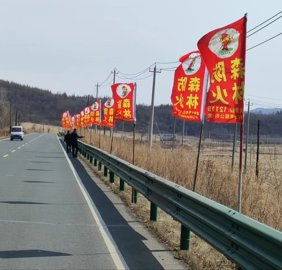 林場在轄區(qū)重點林緣帶布設防火旗陣10處,在進山路口、道路兩旁懸掛防火宣傳條幅25條,對防火物資及裝備進行全面檢查,確保防火物資齊全,防火機具狀態(tài)良好。在轄區(qū)內(nèi)各村屯張貼《吉林省人民政府森林防火命令》,對周邊村民進行全域式覆蓋防火宣傳,同時與13個行政村負責人簽訂《防火責任狀》,為春季防火打下堅實基礎。