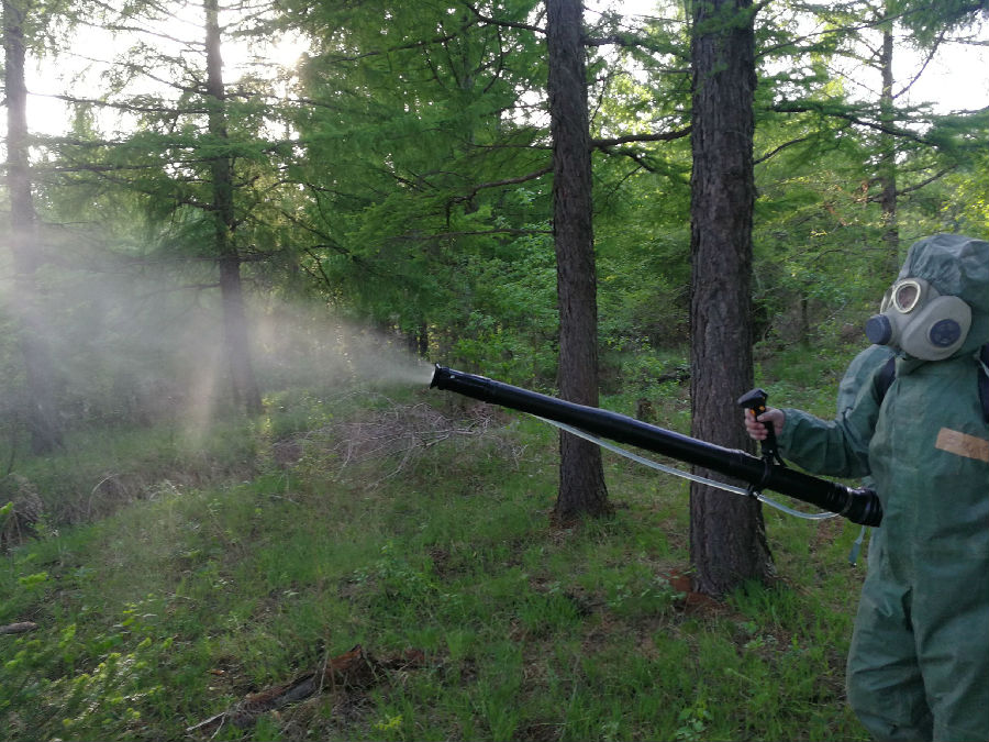 2019年6月1日,安圖林業(yè)有限公司島安林場松林中機(jī)器轟鳴、白煙滾滾,這是防治專業(yè)工作人員正在林間噴施煙霧藥劑除治松毛蟲。而這僅僅是森防員們的日常工作的縮影。